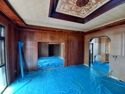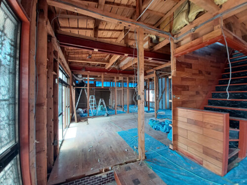 家の中は壁や天井を剥がし、スケルトンな状態になりました。