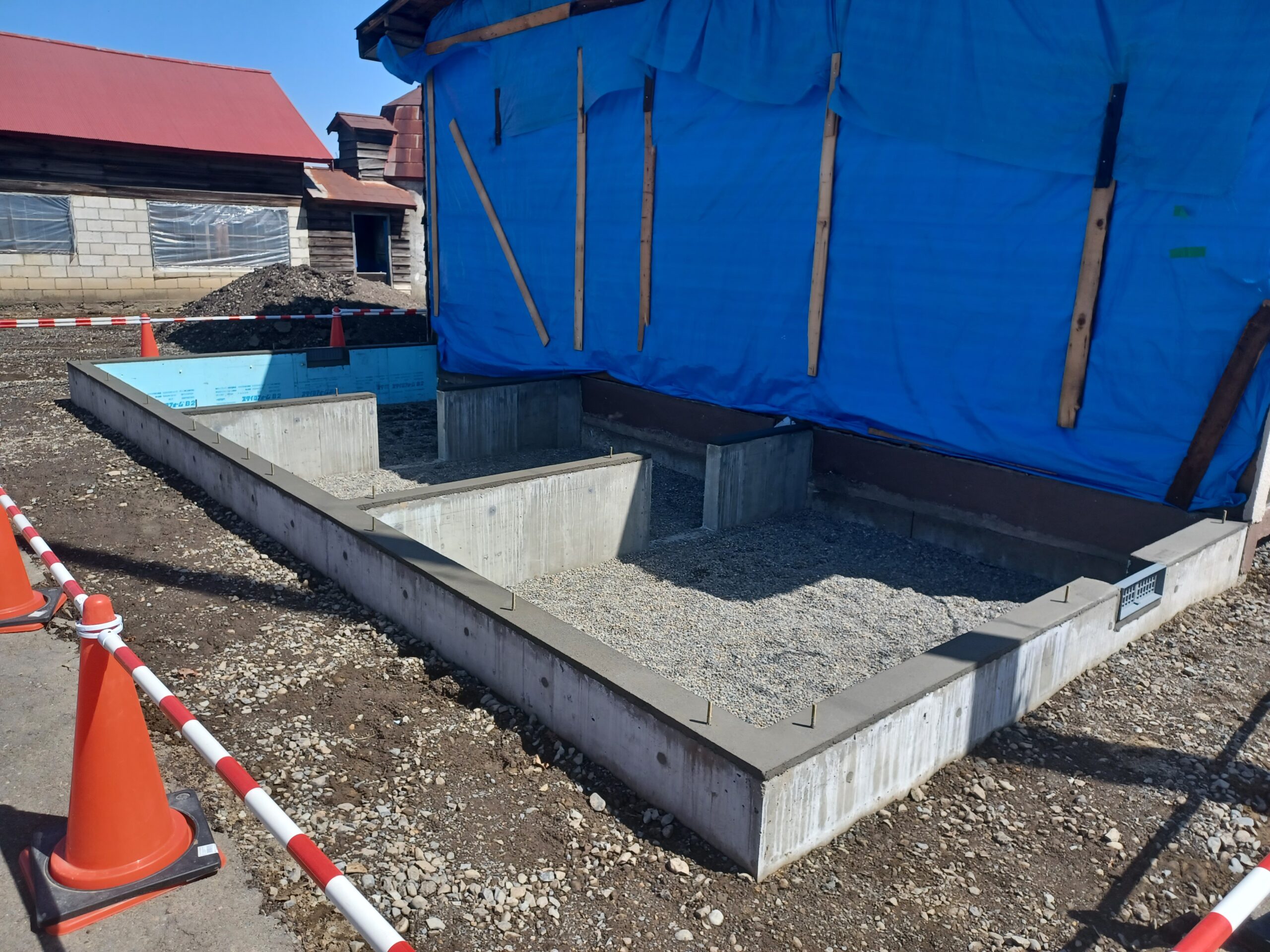 既存部分の改修工事と並行して進めていた基礎の工事も終了しました。