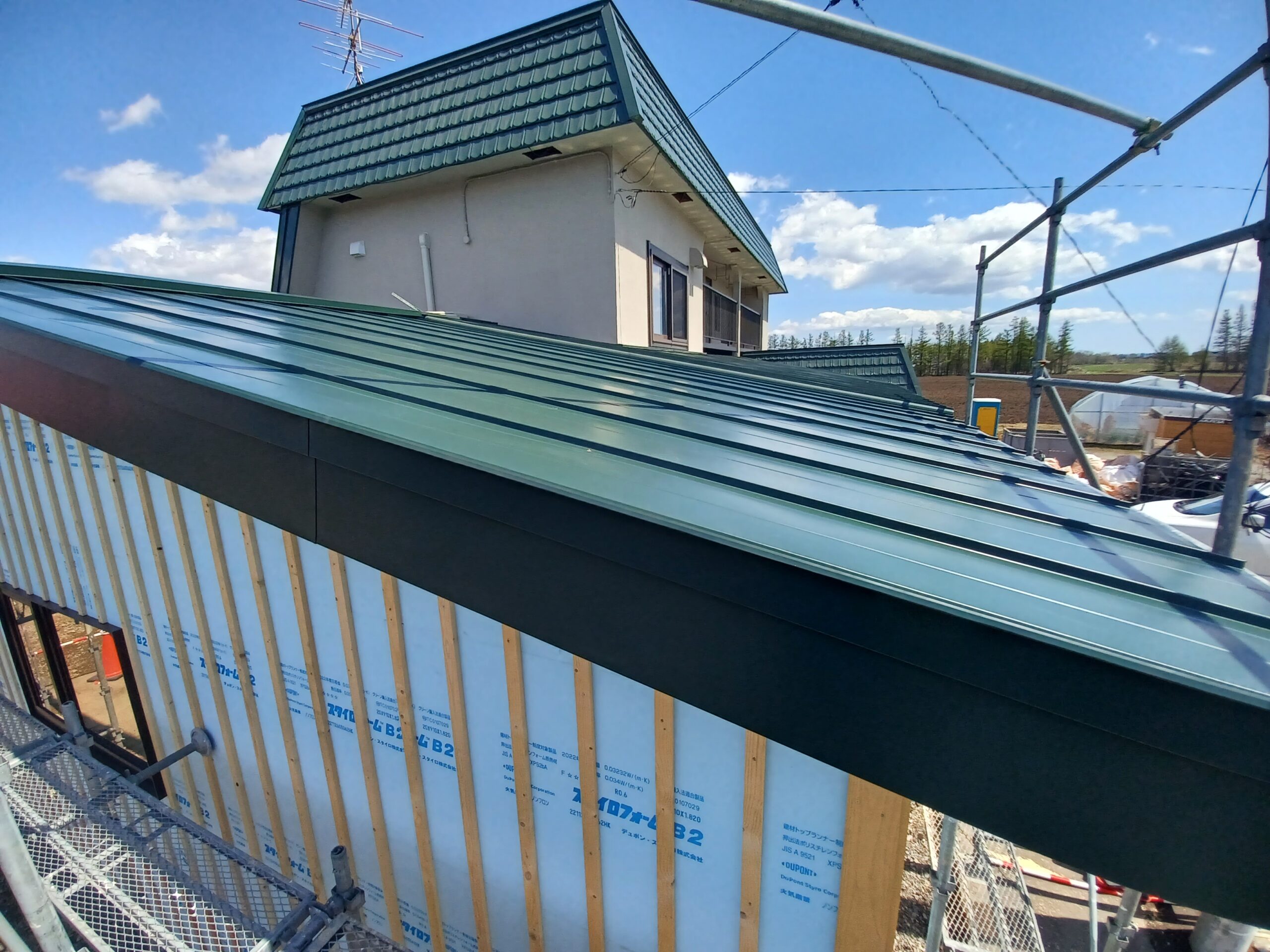 屋根の板金の施工と壁面の付加断熱の施工まで終了しました。