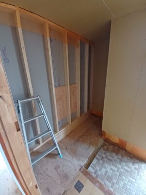 壁の石膏ボードを貼っていきます。