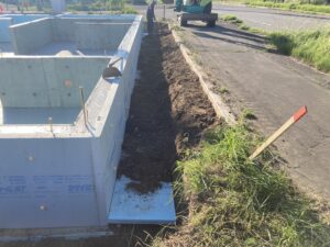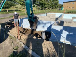 コンクリートが固まり、枠の解体から埋め戻しへと