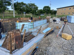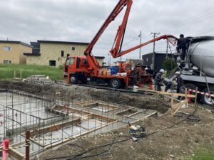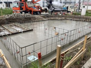 前回のブログでは、土間の鉄筋が組まれたところまでの