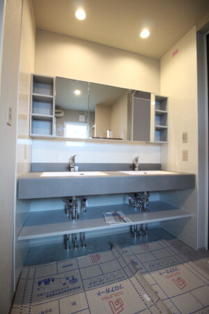 上の写真は新たに造作した洗面化粧台ですが、