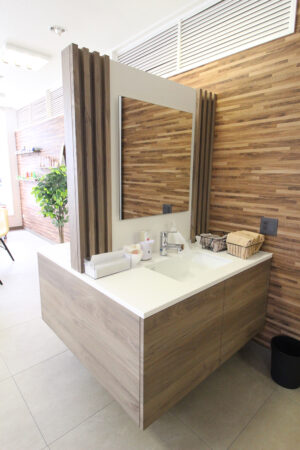 洗顔など行えるように、洗面台を新たに2台設置しています。