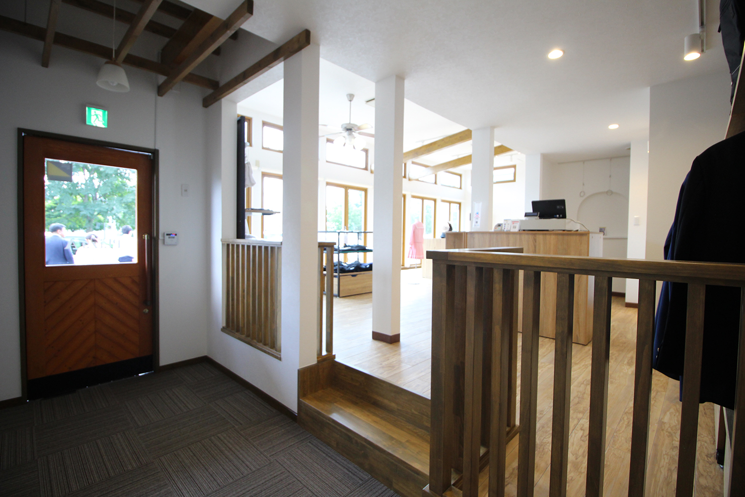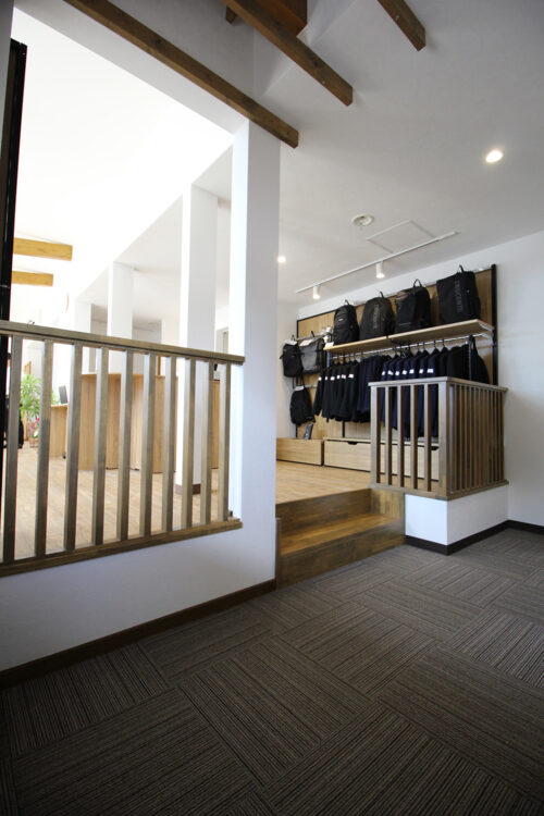店舗拡充のため、一部床の高さを変えて新たに階段、手すりを造作しました。