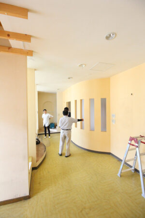配線工事、塗装工事、カーテン工事、看板移設、消防設備工事等を行いました。
