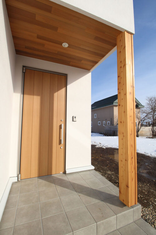 玄関ドアは断熱性の高いYKKapのイノベストD50をお選びいただき、