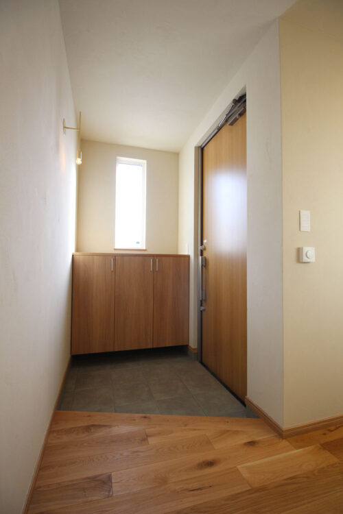 玄関収納は、既製品よりも少し高めに設計し造作しました。