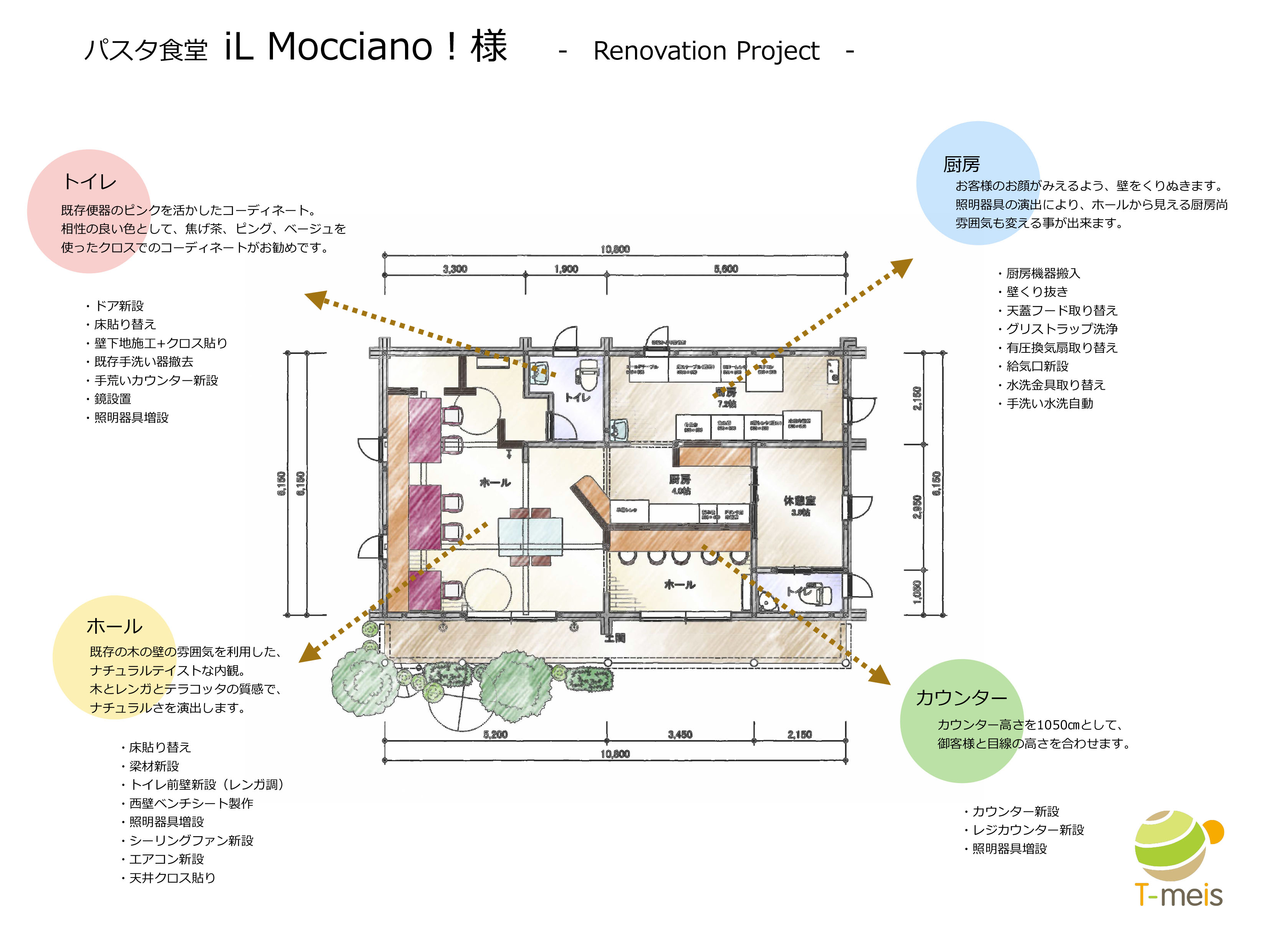 間取り、素材、照明器具などのご提案をさせて頂きました。 イメージが伝わるように、パースを作ったり描いたりしてご提案します。
