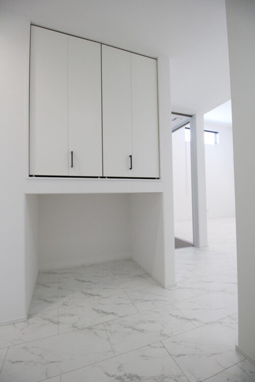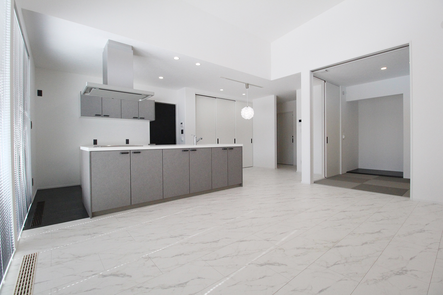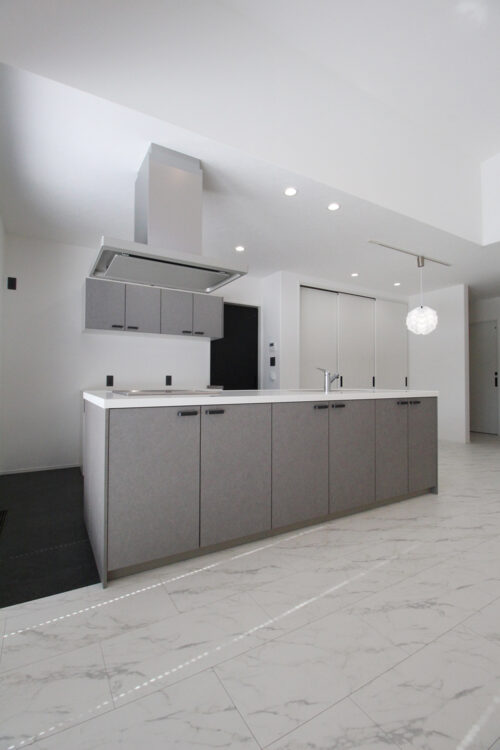 木目柄が苦手というご家族のために、石目柄の内装で統一しています。