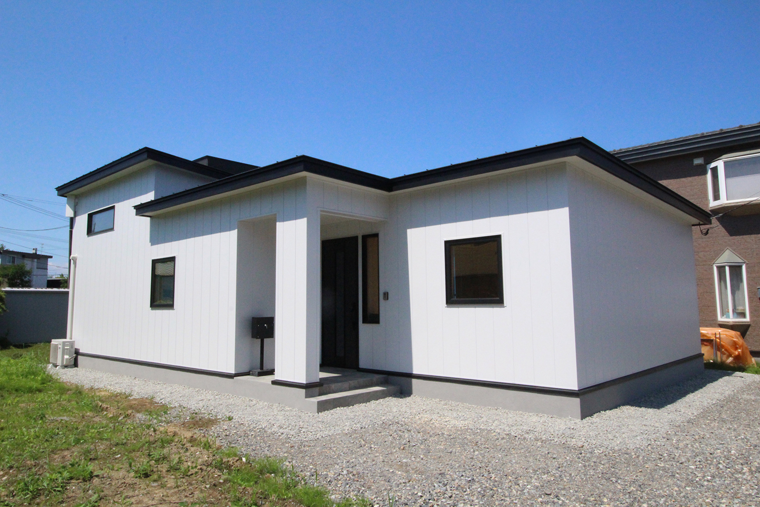 【帯広市 新築施工例】ホワイトとグレーを基調としたシンプルモダンの家