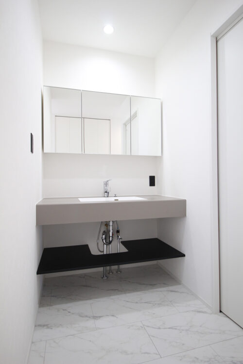 幅120㎝の洗面台はアイカの洗面カウンターを使用しています。