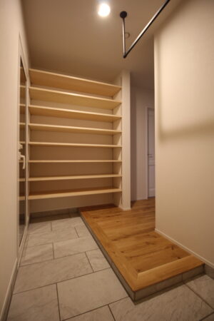 たくさん靴が収納出来るよう棚板を増やしました。