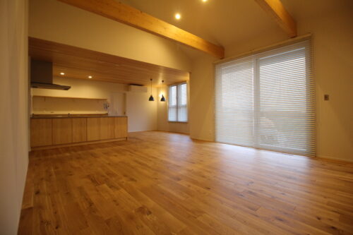 大きな梁が空間のアクセントになっています。