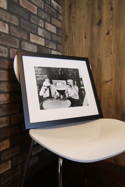古レンガと、板目模様のクロスを合わせヴィンテージ感を出しています。