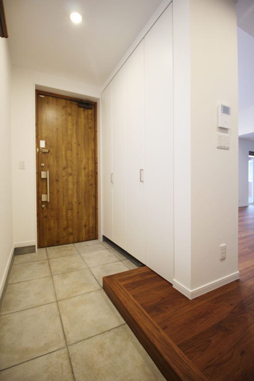 玄関はコンクリート土間に目地を入れたデザイン。