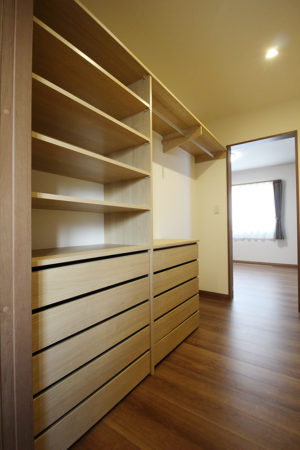 今回は既製品の収納棚や引出しを設置しました。