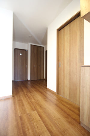 洗面脱衣室からホール~キッチン&リビングへと