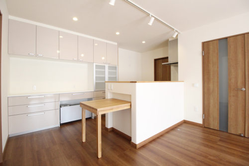 キッチンの横には折畳み可能なミニテーブルを造作しました。