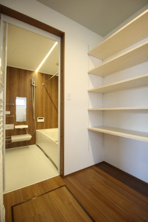 2世帯共有となります。浴室の横にはあると便利な可動棚。
