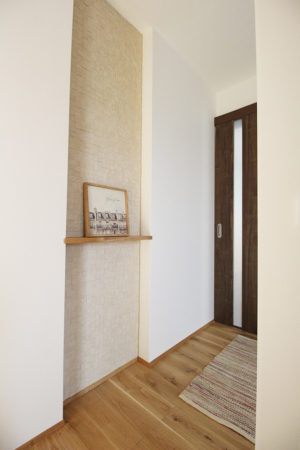 玄関ホールにもアクセントにニッチを作り、エコカラットを貼りました。