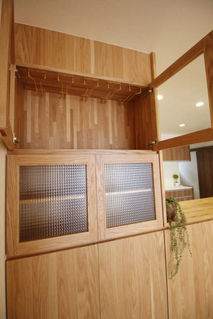 キャビネットの左側上部にはワイングラスが収納出来る