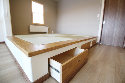 小上りの空間を利用して引出し収納を設けました。