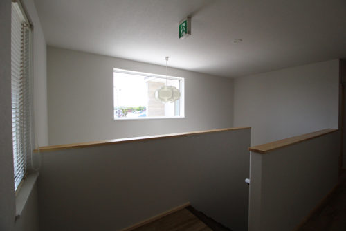 将来、太陽光パネルをのせるために一部片流れ屋根にしています。