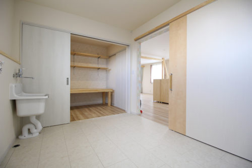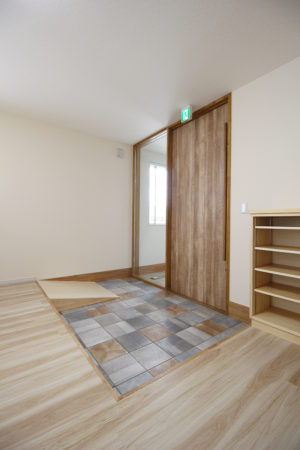 天井まである高い引戸&可愛らしいタイル。