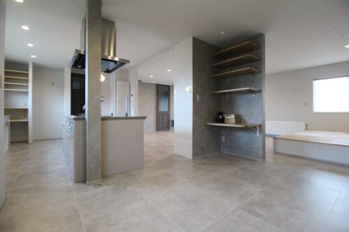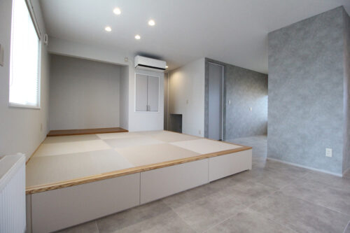 優しい色味の小上り和室。LDK全体を見渡せます。