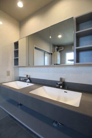 三面鏡 + 棚を取り付け、収納力がかなりアップしました。