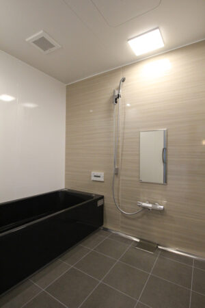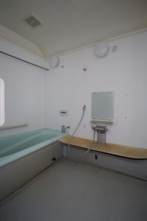 床は磁器タイル、浴槽やパネルはホーロー製の丈夫なお風呂です。