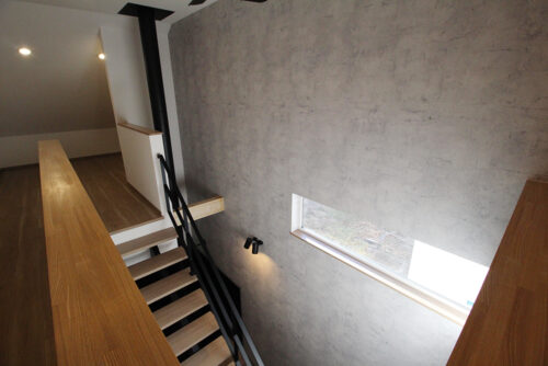【帯広市 新築施工例】開放的な玄関の広がる薪ストーブのある家