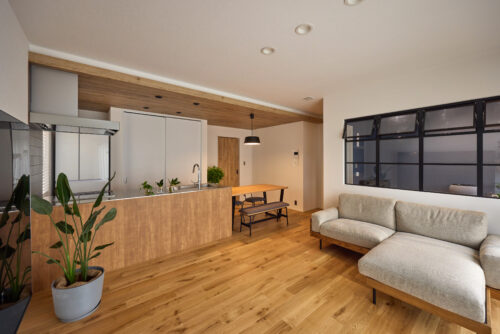 【帯広市 新築施工例】リビングとワークスペースが内窓で程良くつながる平屋住宅